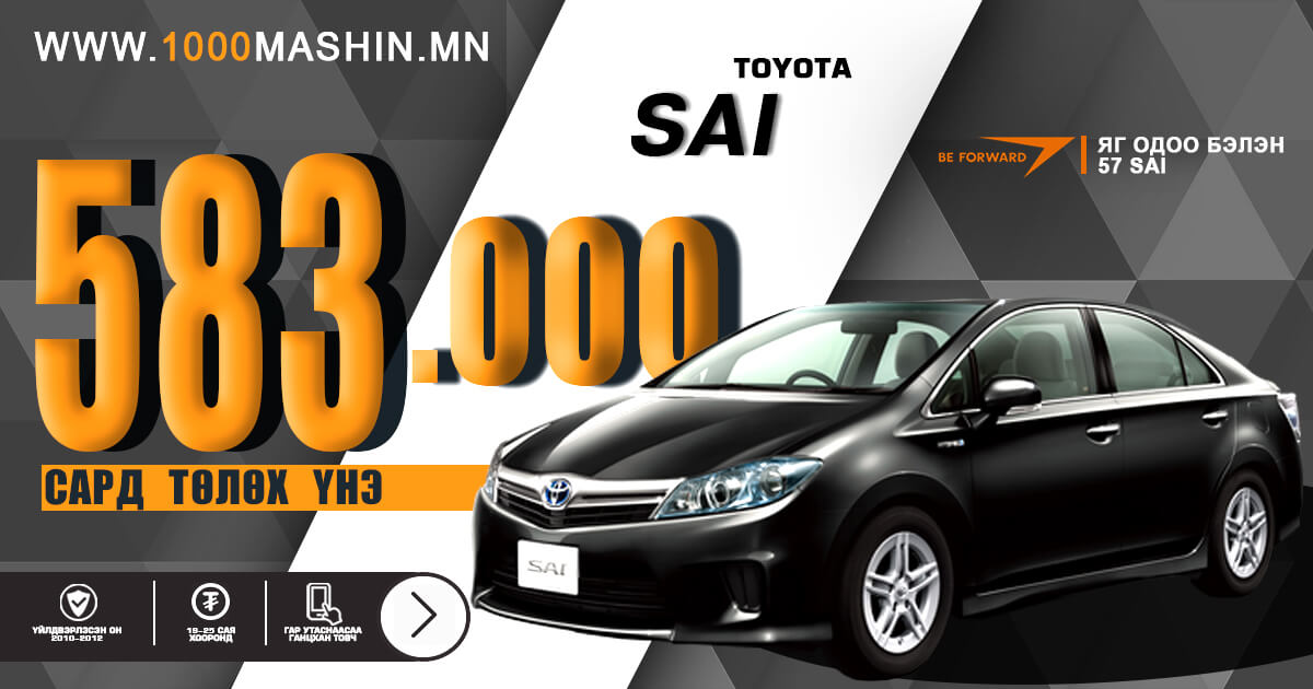 | ГОЛОМТ БАНК | Урьдчилгаа: 20% | Хүү: 1,85% | Хугацаа: 48 сар |